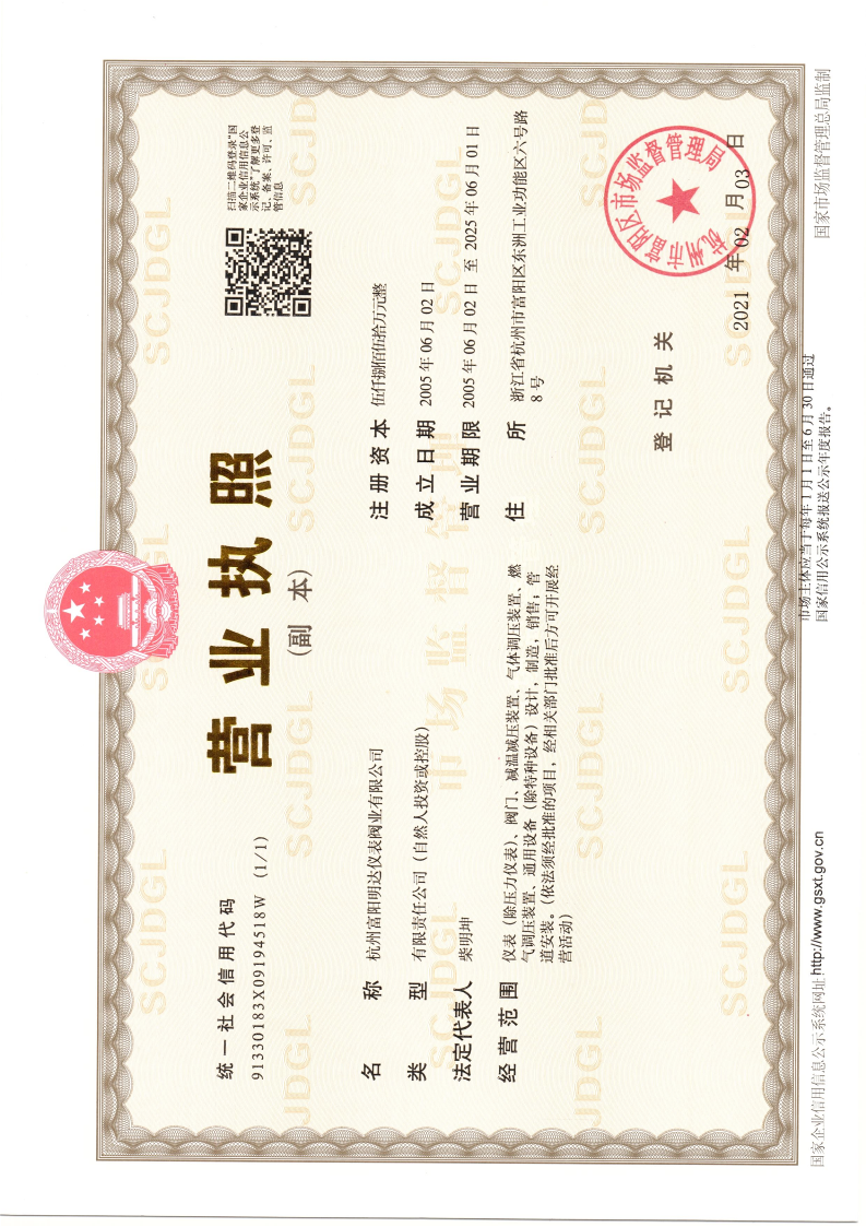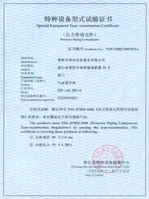 自力式调节阀型式试验证书